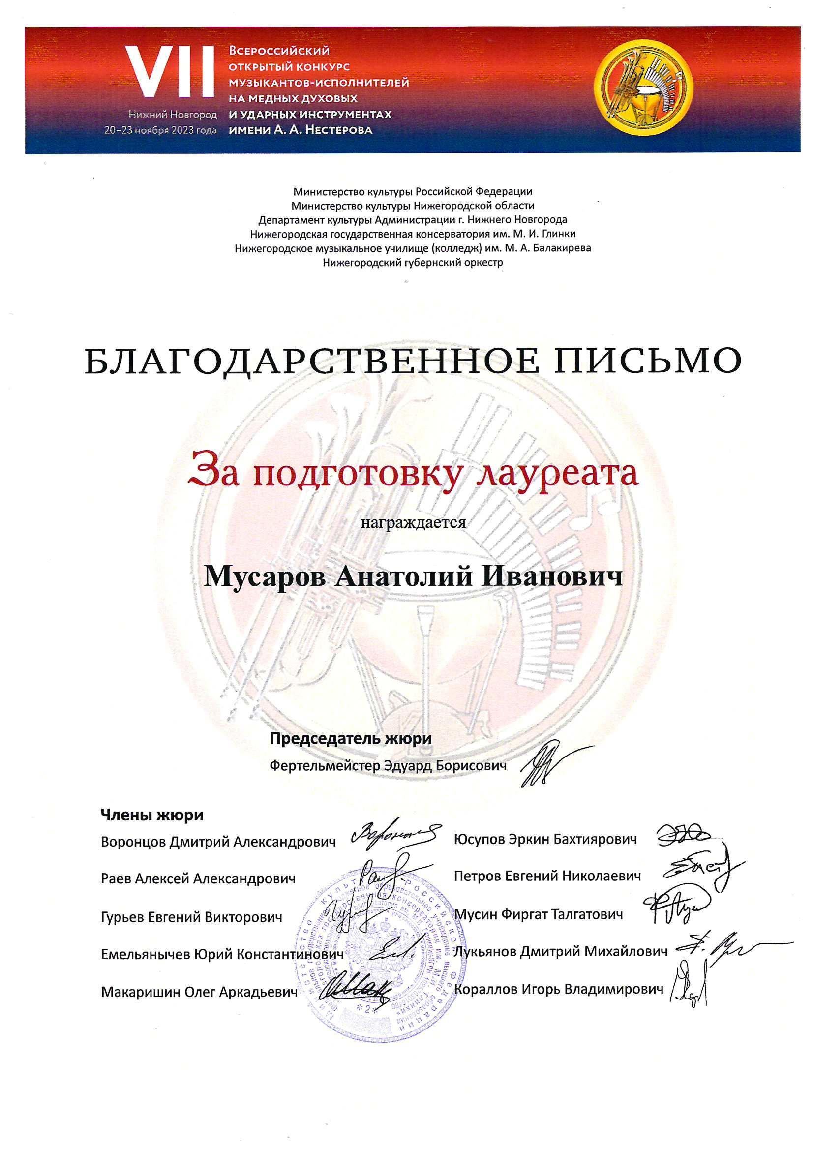 Результаты конкурсных прослушиваний 2023