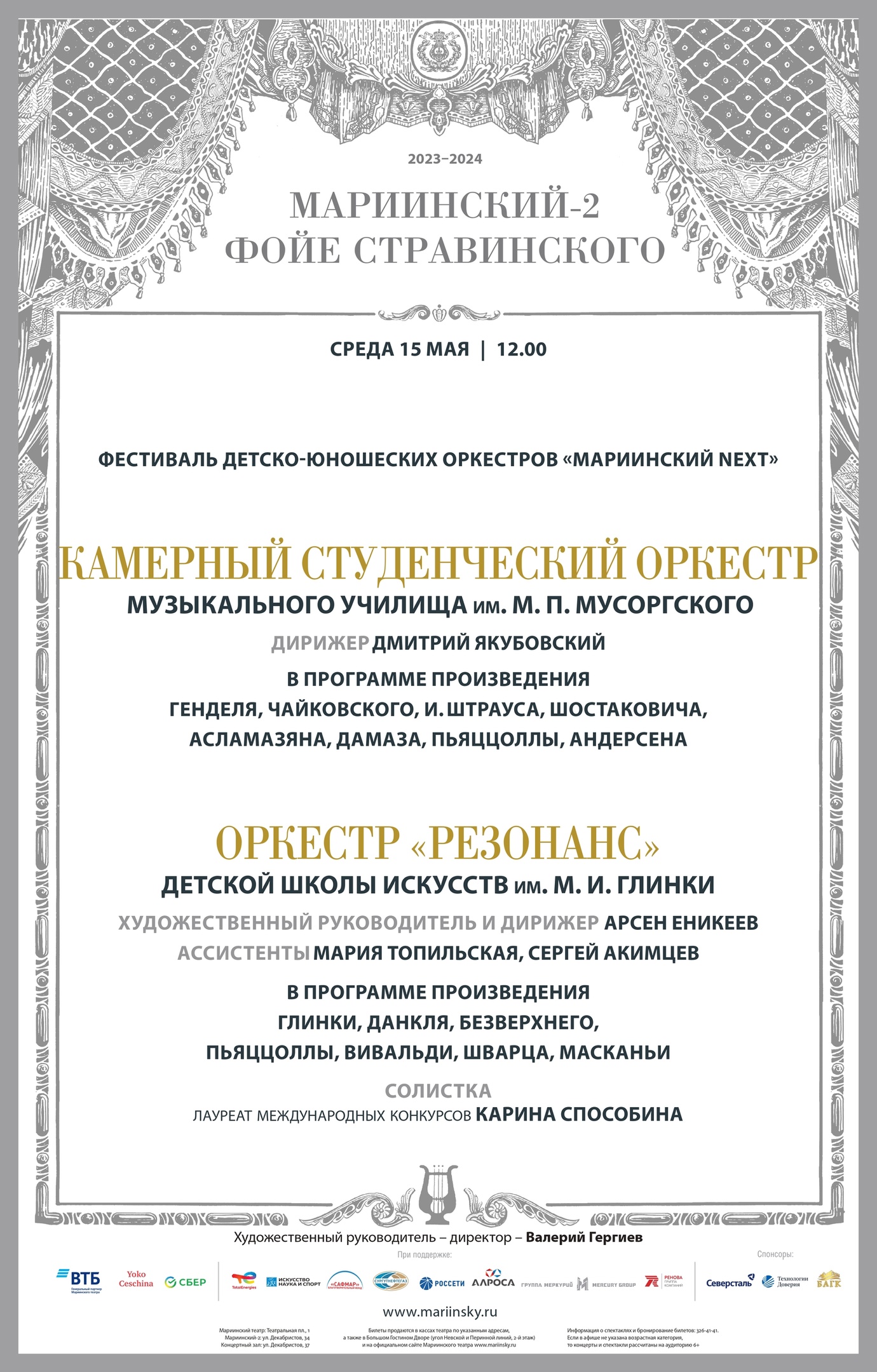 Прекрасным выступлением в концертном зале «Мариинка-3» закончился 2023-2024 учебный год для наших замечательных первокурсников отдела оркестровых струнных инструментов.В составе Камерного оркестра музыкального училища Мусоргского под руководством Дмитрия Борисовича Якубовского ребятам посчастливилось выступить на фестивале детско-юношеских оркестров «Мариинский NEXT».