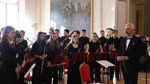 21 февраля состоялся концерт духового оркестра нашего училища, приуроченный ко Дню защитника Отечества. Он прошел в Фельдмаршальском зале Эрмитажа, коллектив исполнил произведения, тесно связанные с именами выдающихся русских полководцев. Руководитель оркестра Янис Валерьевич Барташевич каждый раз придумывает новую яркую программу, стилистически выверенную, информативную, корнями уходящую в историю русской музыки для военных духовых оркестров. Слушатели получили огромное удовольствие и провожали наших ребят искренними и продолжительными аплодисментами.
